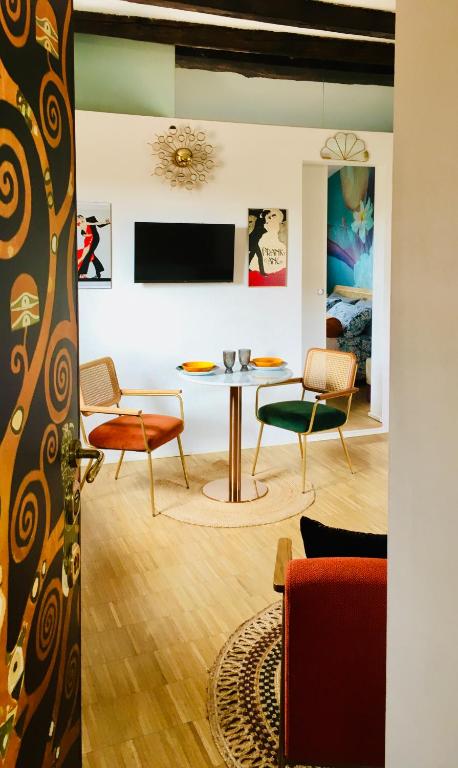 This air-conditioned apartment comprises a living room with a flat-screen TV offering streaming services and a separate bedroom with one bed. The kitchenette includes an oven, microwave, stovetop, refrigerator, coffee machine, electric kettle and all necessary kitchenware for meal preparation. Guests will find towels and bed linen provided along with amenities such as heating, hardwood flooring, wardrobe space and a seating area.