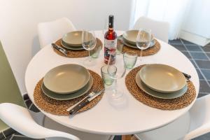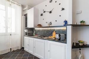 В квартире есть хорошо оборудованная мини-кухня с плитой, холодильником, микроволновой печью, кофемашиной и электрическим чайником, предоставлены все необходимые кухонные принадлежности и средства для приготовления чая и кофе. Также имеется обеденный стол и детский стульчик. Гостиная зона оснащена двумя кроватями (включая раскладной диван), отоплением, зоной отдыха и шкафом, полы выполнены из плитки или мрамора.