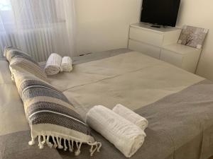 L’appartamento presenta una camera da letto separata oltre a un soggiorno con divano letto e TV a schermo piatto. Gli ospiti possono usufruire della cucina completa dotata di forno, piano cottura, frigorifero, utensili da cucina, bollitore elettrico nonché di set per tè e caffè, sono presenti anche tavolo da pranzo e angolo cottura. Tra i comfort aggiuntivi vi sono il riscaldamento, pavimenti in piastrelle o marmo in tutto l’ambiente, ferro da stiro con asse da stiro, armadio guardaroba e stendibiancheria, su richiesta sono disponibili anche lettini o culle per bambini.